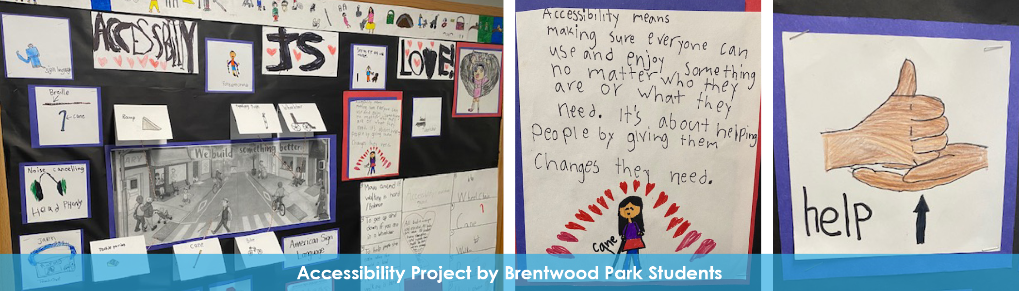 Students in several grades at Brentwood Park Elementary have been learning about accessibility, including this work by Grade 2/3 students focusing on ASL and exploring the meaning of accessibility.