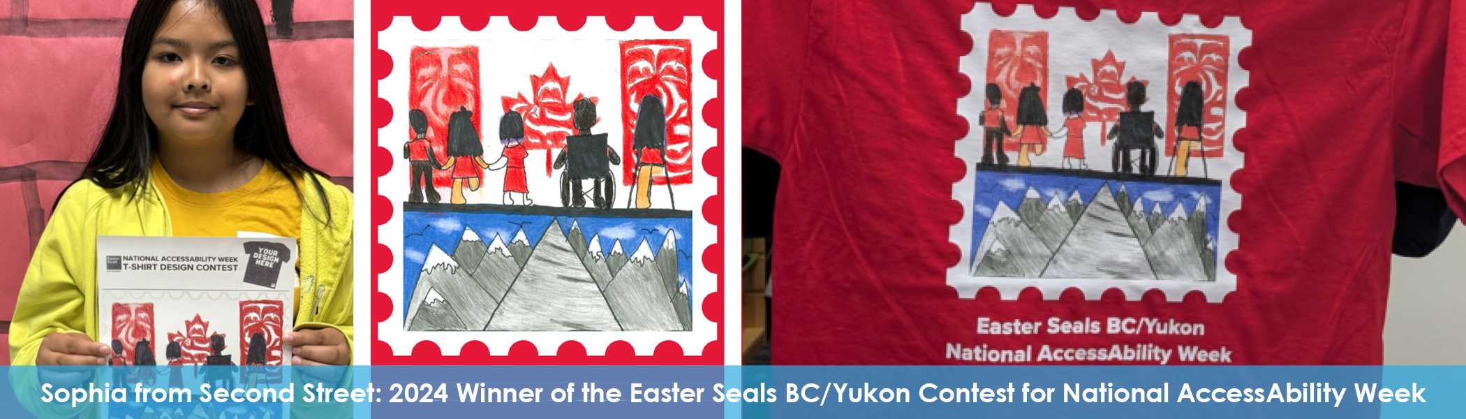 The 2024 winner of the Easter Seals BC/Yukon contest for National AccessAbility Week was Sophia from Second Street Community School. Her design was printed on t-shirts.