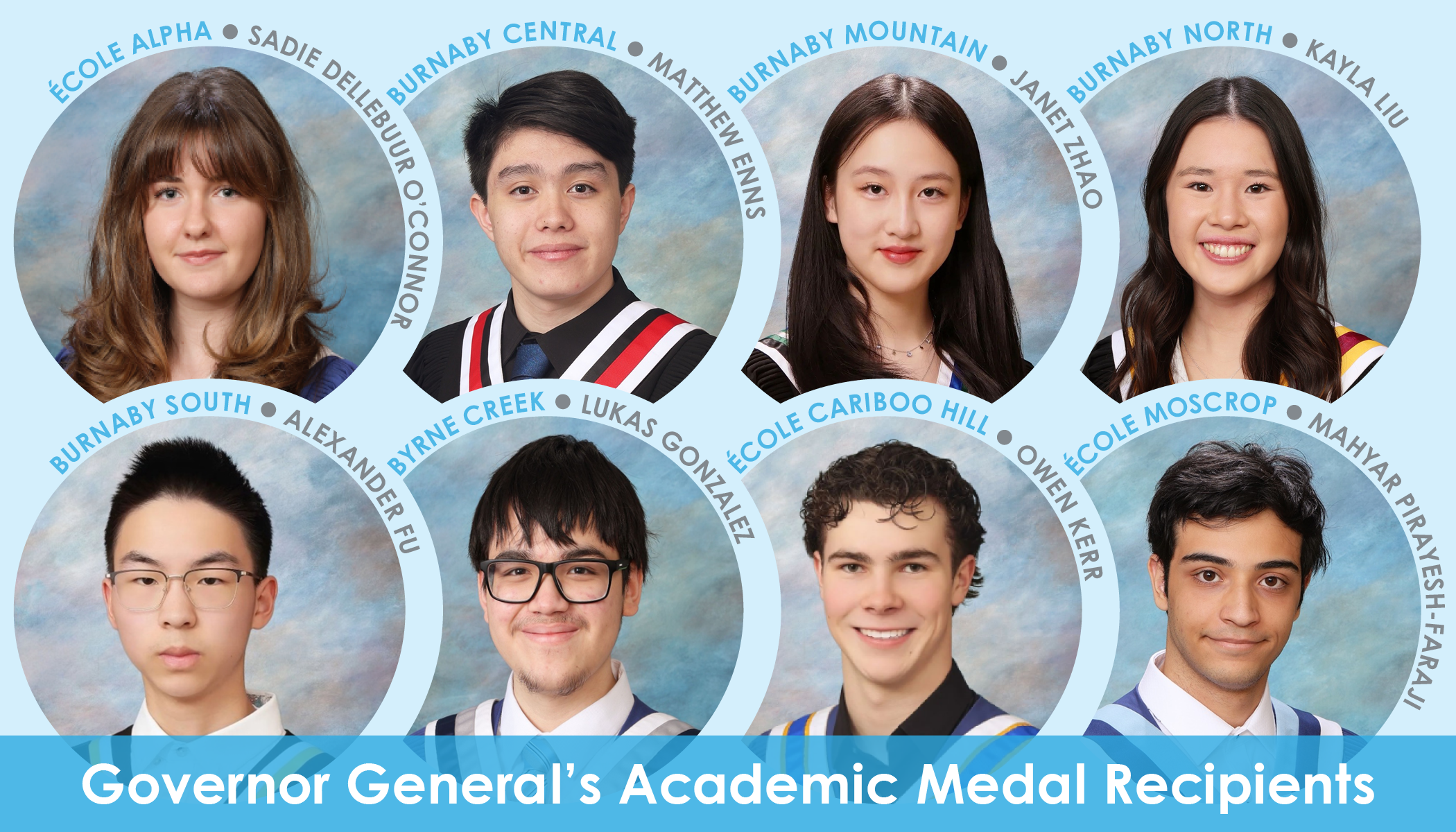 The Governor General’s Academic Medal recipients for the 2024-25 school year were celebrated at the October public meeting of the Burnaby Board of Education. The eight Burnaby Schools graduates earned the prestigious award for having the highest grade-point average at their school.