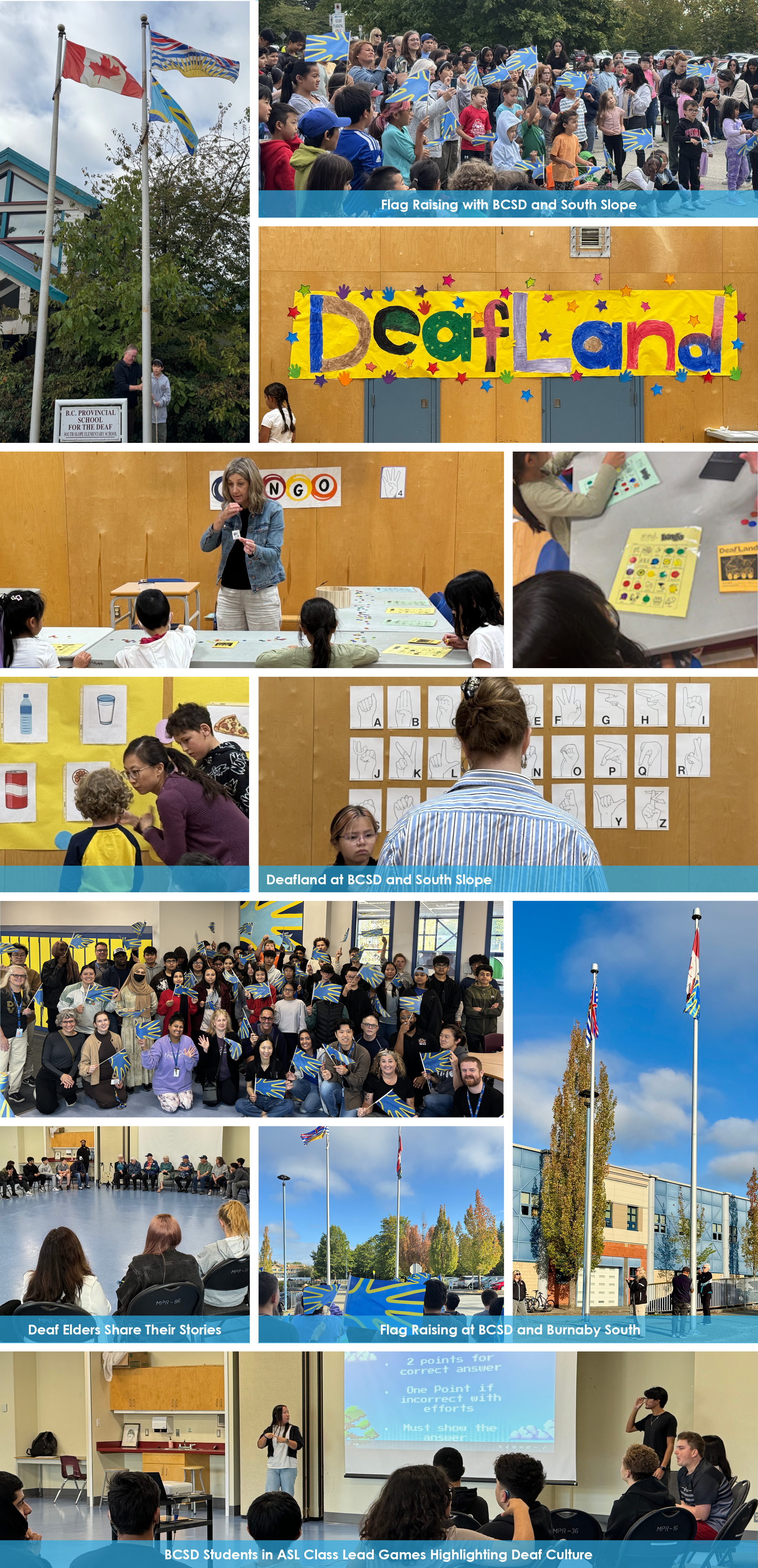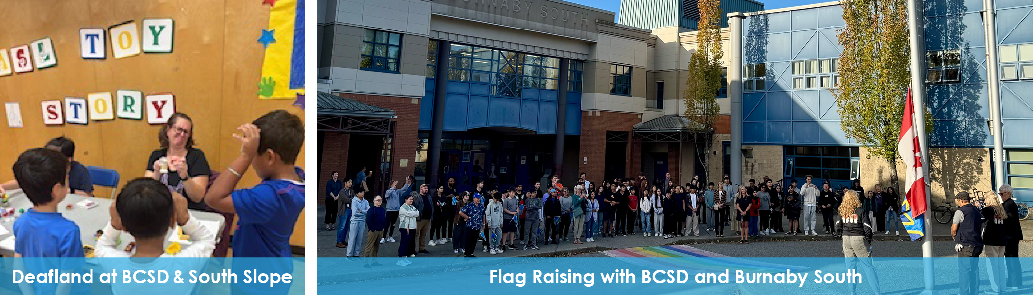 BCSD’s elementary and secondary sites began the week with their second annual raising of the Deaf Flag – building community by inviting students from South Slope Elementary and Burnaby South Secondary, which share school sites with BCSD, to join in the ceremony.