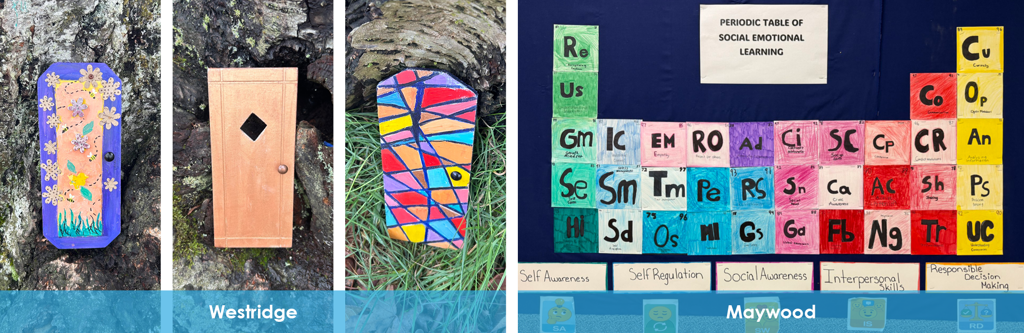 A Grade 1 class at Westridge Elementary got creative in their story workshop with ideas about who lives behind the doors. Children at Maywood Community School explored a Periodic Table of Social Emotional Learning.