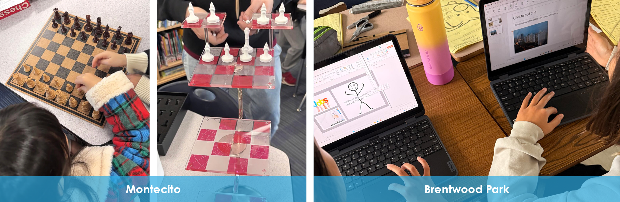Children in a lunchtime Chess Club at Montecito Elementary are getting the chance to practice strategic thinking and problem solving. At Brentwood Park Elementary, a Grade 4/5 class spent time on budgeting and expenses, building presentations to showcase their learning.