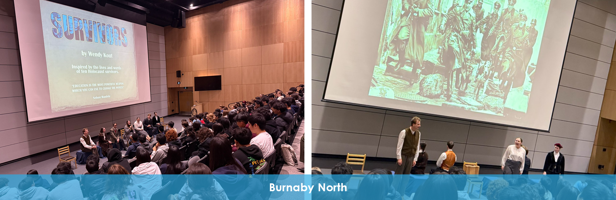 Students at Burnaby North Secondary had an opportunity to watch a presentation of Survivors, which is inspired by the lives and words of ten Holocaust survivors. The Holocaust Educational Theatre troupe answered questions from youth afterwards.