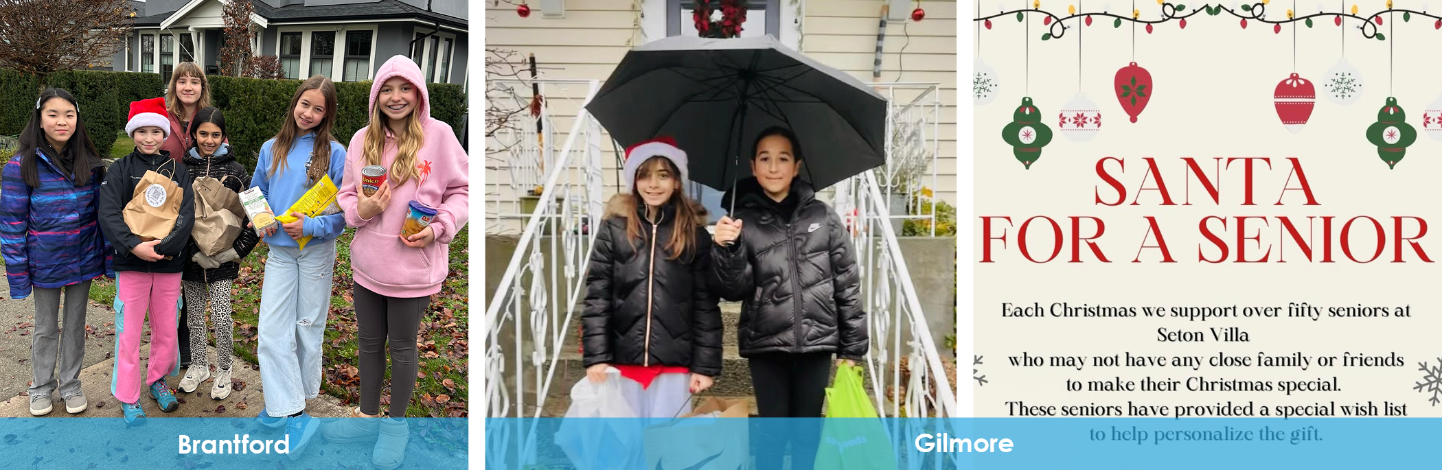 Students from Brantford Elementary collected donations of food and toys to support the community on their Jingle Bell Walk. Children at Gilmore Community School also collected carloads of donations on their Mr. Morton Jingle Bell Walk. Additionally, each year Gilmore participates in Santa for a Senior, where gifts are given to people who may not have close family or friends to make their Christmas special.