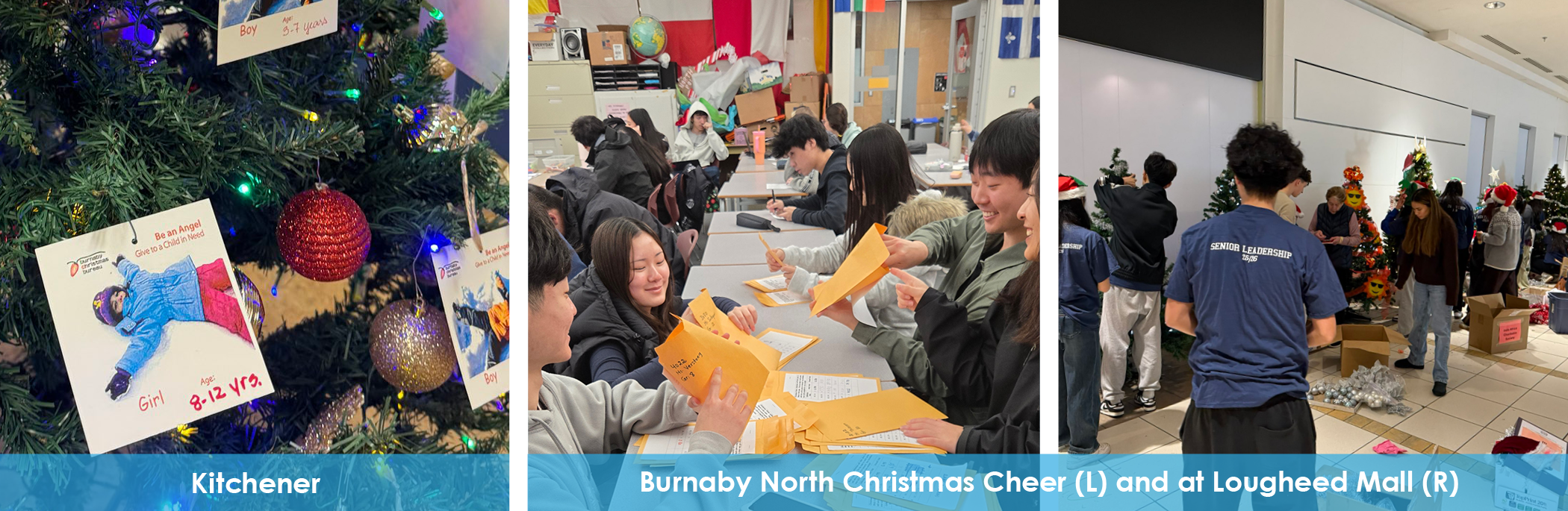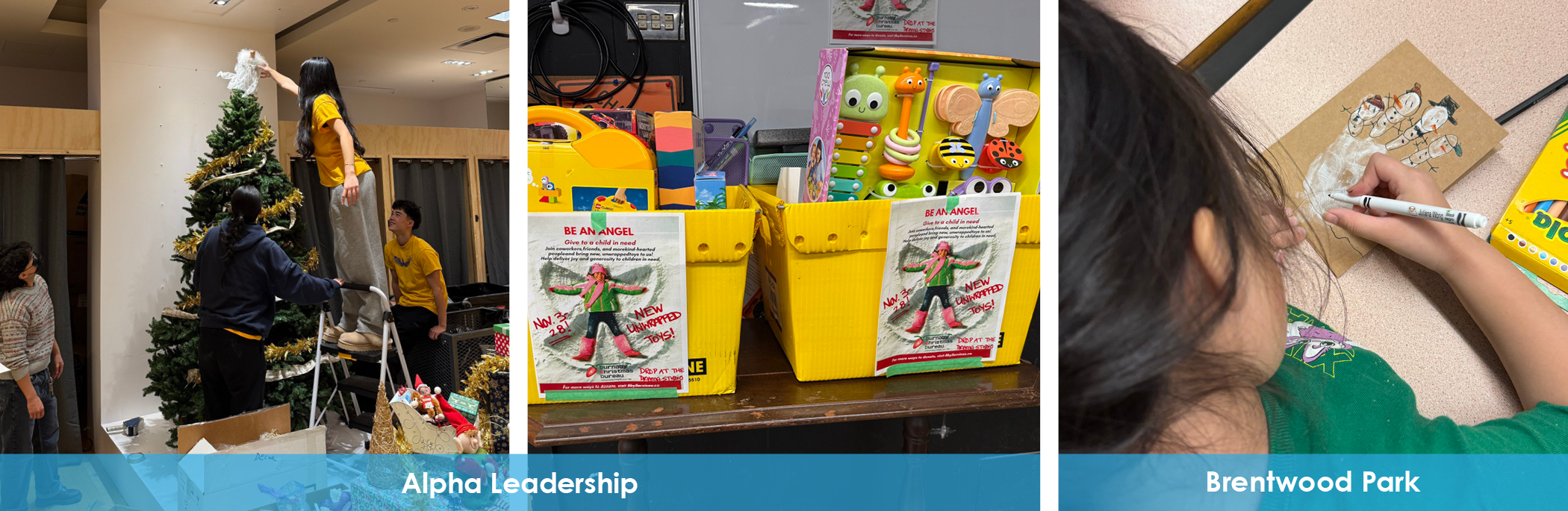 Leadership students at Alpha Secondary donated their weekend time to decorate trees for the Christmas Bureau’s Toy Room. The school also held an Angel Toy Drive to further support the cause. Additionally, Alpha students worked with several grades at Brentwood Park. They made cards to go in hampers for the Burnaby Hospice and Burnaby Neighbourhood House.
