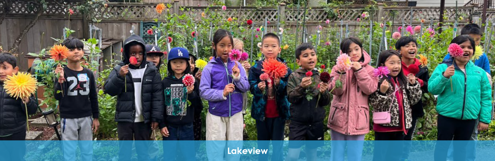 On a walking field trip, the Grade 2 Garden Club at Lakeview Elementary visited a local dahlia grower’s garden, exploring rows of colourful flowers. Each student brought a bloom back to school, sharing with their classmates their observations about the diversity in shape, size, and colour among the flowers.