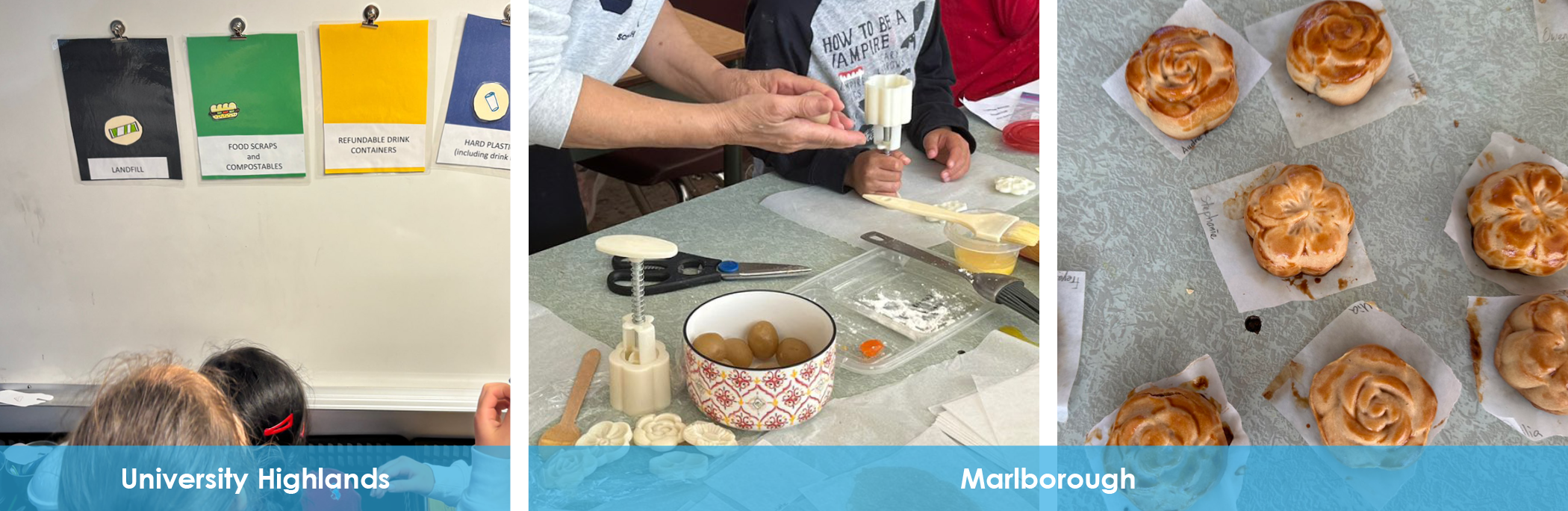 Student leaders of the Green Team at University Highlands Elementary visited classrooms to teach their peers about how to properly sort waste and recycling. As part of celebrating the Mid-Autumn Festival, primary students at Marlborough Elementary made mooncakes with the help of family members.
