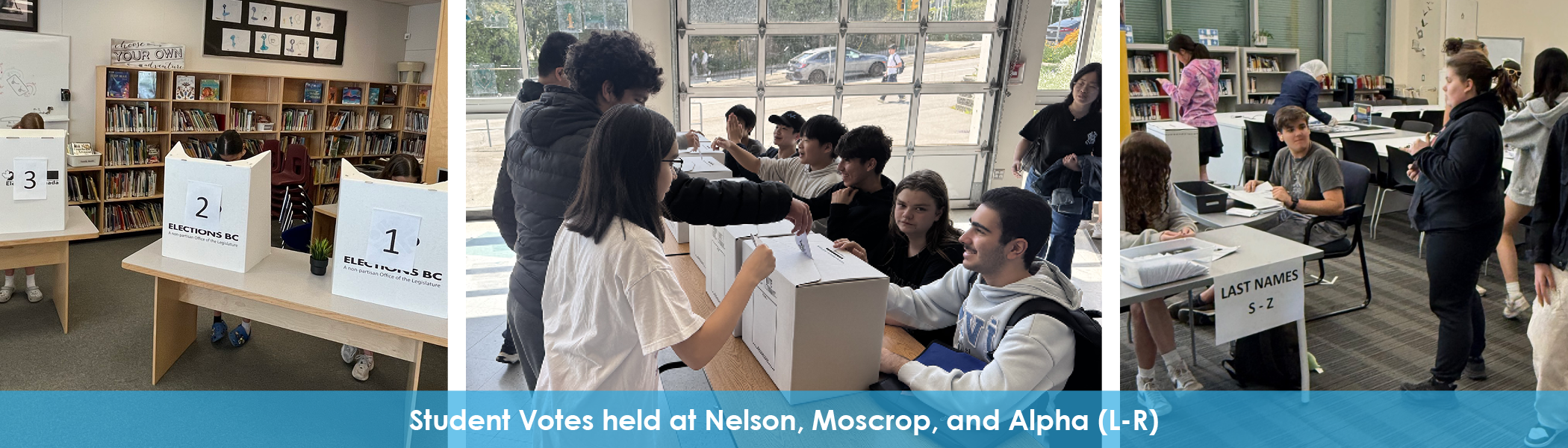 Using the Federal election as a chance to learn, several elementary schools participated in student votes, including Nelson Elementary. Many high schools also held mock votes to support learning, such as Alpha and Moscrop Secondary. The student voting stations were supported by CIVIX Canada – a non-partisan charity focused on democracy and young people.