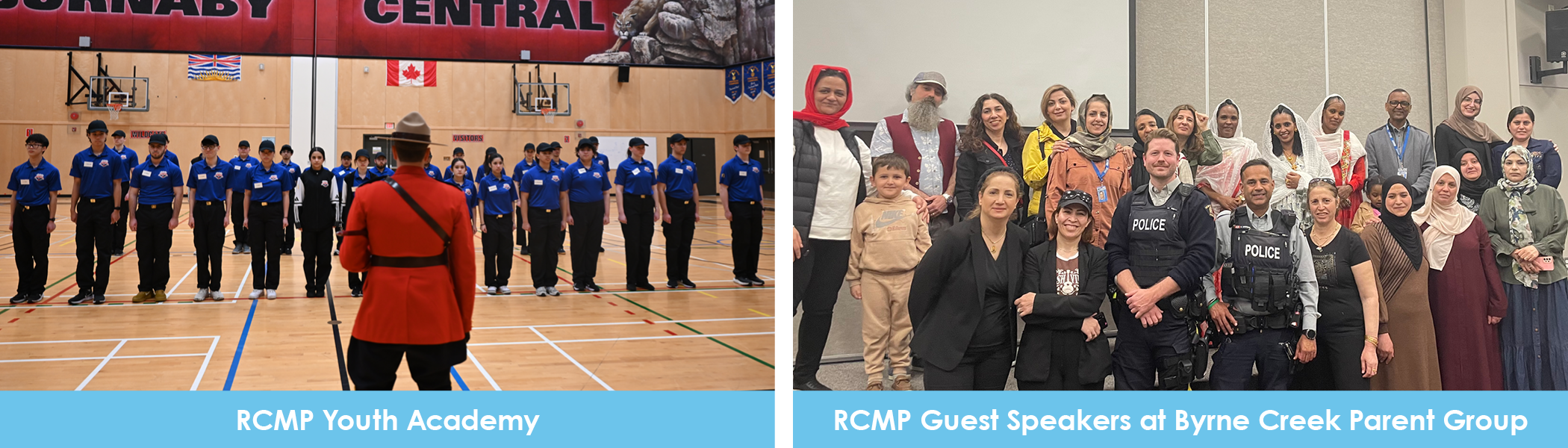 A similar academy was also held recently in partnership with the Burnaby RCMP. Nearly 30 students from across the District came together at Burnaby Central Secondary to explore aspects of policing, as they contemplate a possible career in law enforcement. Following an invitation by the Settlement Workers in Schools or SWIS team, Burnaby RCMP were guest speakers about safety at a monthly parent group meeting at Byrne Creek Community School. The meetings are designed to help newcomers build awareness of local supports.